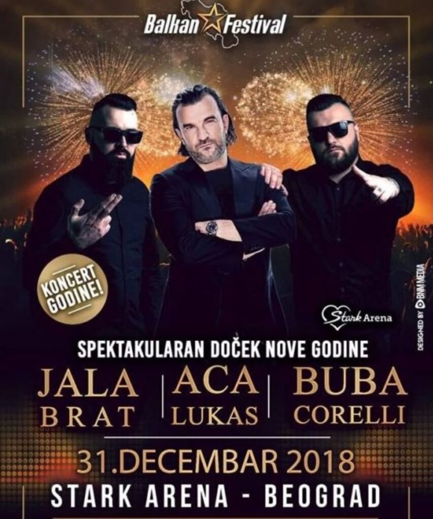 Ako zamišljate doček sa hiljadama ljudi, najjačim hitovima i spektaklom koji nadmašuje očekivanja – onda je Aca Lukas Doček Nove godine 2019 u beogradskoj Štark Areni događaj koji ne smete propustiti! Jedna od najvećih balkanskih zvezda, Aca Lukas, te noći će stati rame uz rame sa regionalnim hit-mejkerima Jala Bratom i Bubom Corelijem, u koncertu koji spaja dve muzičke scene – narodnu i urbanu.