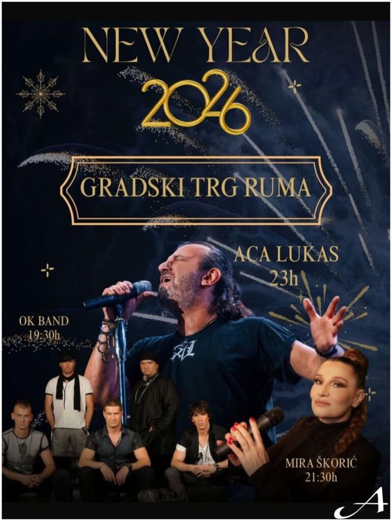 Gradski trg u Rumi postaje centralno mesto prazničnog slavlja, jer Doček Nove godine 2026 donosi veliki koncert pod otvorenim nebom uz Acu Lukasa i Miru Škorić. Publiku očekuje veče ispunjeno energijom, poznatim hitovima i atmosferom pravog novogodišnjeg spektakla.