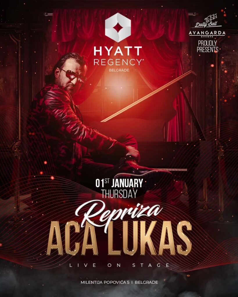 Uz poznate hitove, praznični sjaj i ambijent Hotela Hyatt, repriza Nove godine 2026 uz Acu Lukasa pruža savršenu priliku da se Nova godina dočeka još jednom – opušteno, elegantno i u najboljem društvu.