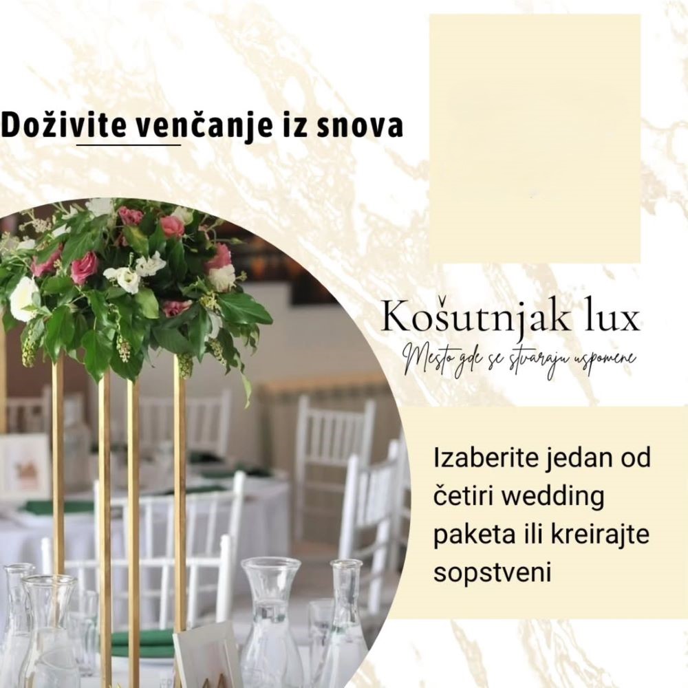 Ako ste spremni da svoj poseban dan obeležite u okruženju koje spaja prirodnu lepotu i gradski glamur, onda je Košutnjak Lux siguran pogodak. Prelepa sala, izbor različitih sala menija, mogućnost ekstravagantnog dolaska helikopterom, stručna podrška i, iznad svega, besprekorna usluga – sve to garantuje savršenu sliku koju ćete s ponosom čuvati u sećanju i foto-albumu.