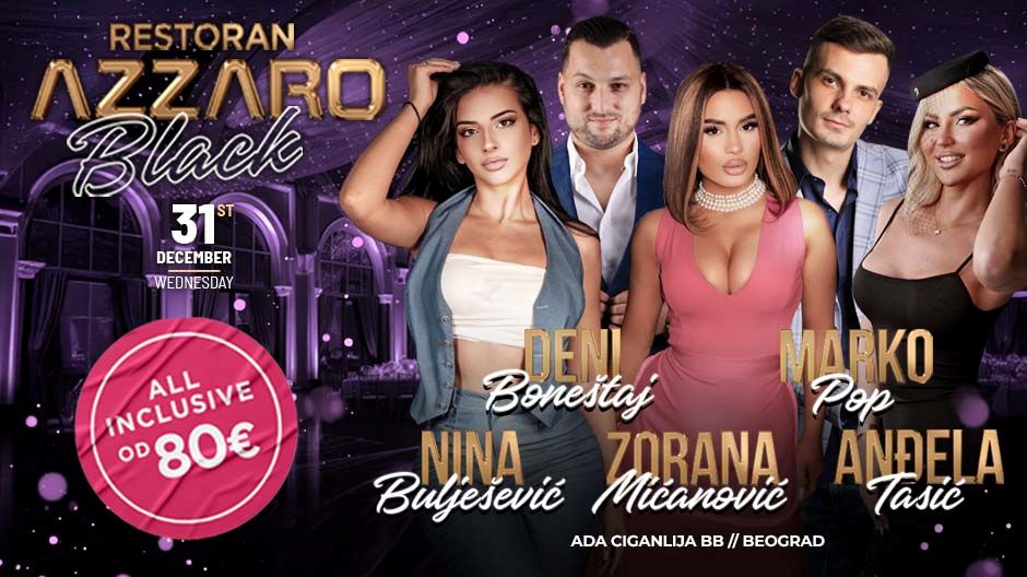 Zajedno sa Denijem Boneštajem, Anđelom Tasić, Markom Popom i Ninom Bulješević, Zorana Mićanović će izvesti širok repertoar – od najvećih balada koje stvaraju tišinu i tihu emociju, do plesnih numera koje bez izuzetka podižu ceo prostor na noge. Azzaro tim je poznat po organizaciji događaja koji se pamte, uz vrhunsku gastronomsku ponudu, set meni i all inclusive piće tokom cele večeri.